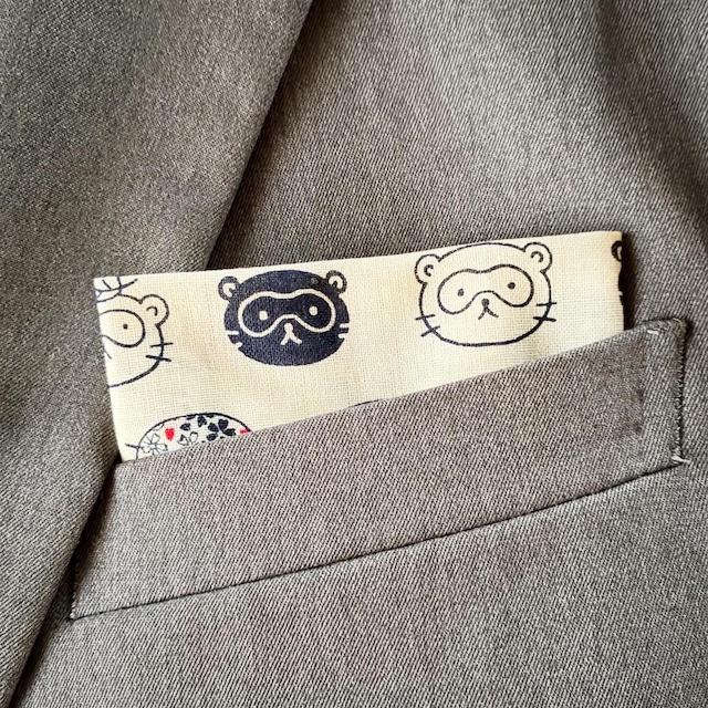 たぬき柄ポケットチーフ(白)